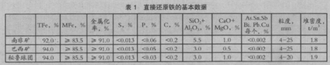 1)脈石含量較直接還原鐵低1%-3%,可降低電耗約10%;