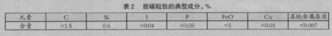 2)S、P 含量低,雜質(zhì)元素也較直接還原鐵低;